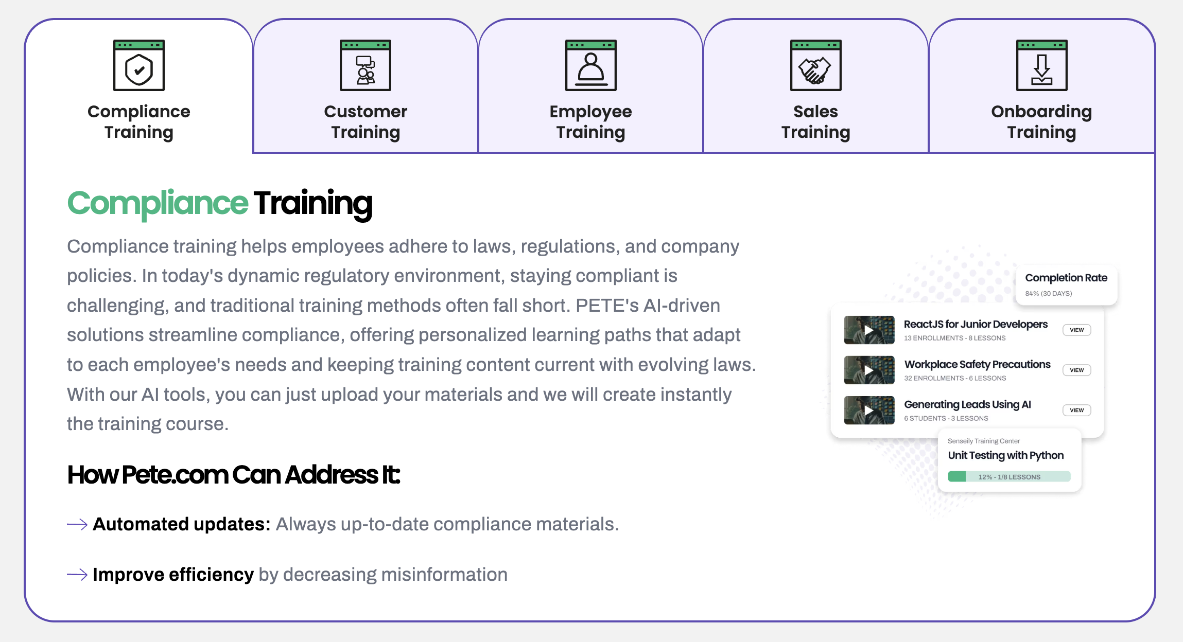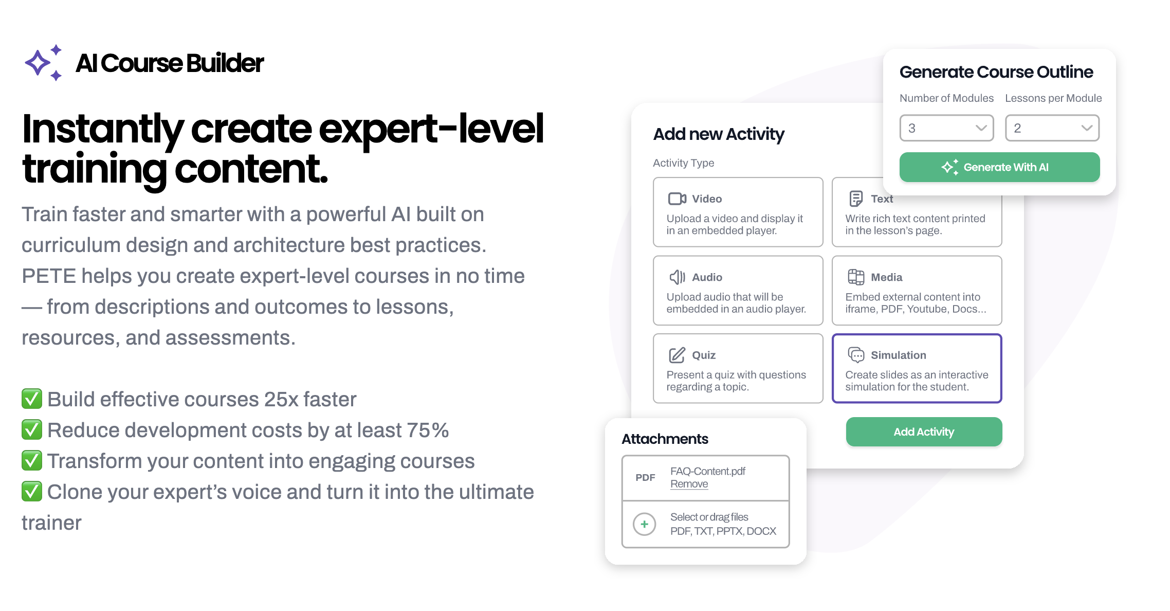 👉 Pete Learning – An adaptive AI professional development platform that personalizes learning journeys, helping employees apply new skills in real-world contexts. It ensures learners practice, reflect, and grow, moving beyond static materials to measurable behavior change.